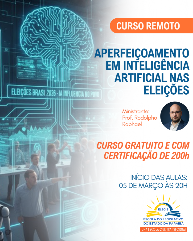 A Faculdade ELEGIS PB anunciou a abertura das inscrições para o novo Curso de Aperfeiçoamento em Inteligência Artificial, Desinformação e Integridade Eleitoral, voltado à formação de profissionais interessados em compreender os impactos das tecnologias digitais sobre os processos eleitorais e o fortalecimento da democracia.