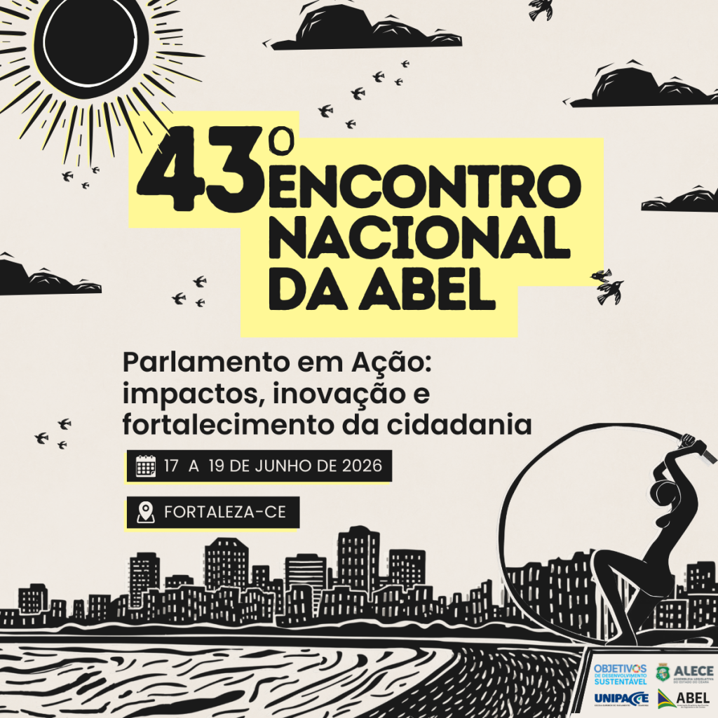 A cidade de Fortaleza (CE) receberá, de 17 a 19 de junho de 2026, o 43º Encontro Nacional da Associação Brasileira das Escolas do Legislativo e de Contas (ABEL). Com o tema “Parlamento em Ação: impactos, inovação e fortalecimento da cidadania”, o evento reunirá representantes de Escolas do Legislativo de todo o país para debater práticas, experiências e estratégias voltadas ao fortalecimento institucional do Poder Legislativo.
