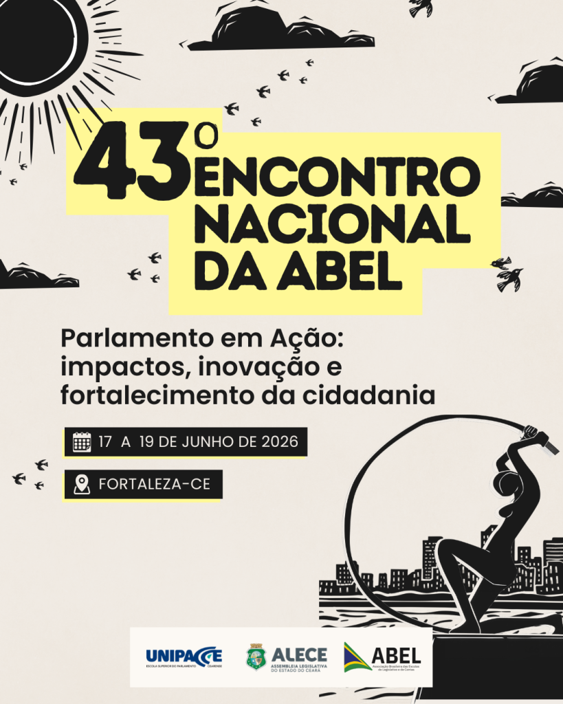 Promovido com o apoio da UNIPACE, da Assembleia Legislativa do Estado do Ceará (ALECE) e da ABEL, o encontro será um espaço de diálogo, troca de experiências e compartilhamento de boas práticas voltadas ao fortalecimento da educação legislativa, da inovação institucional e da participação cidadã.